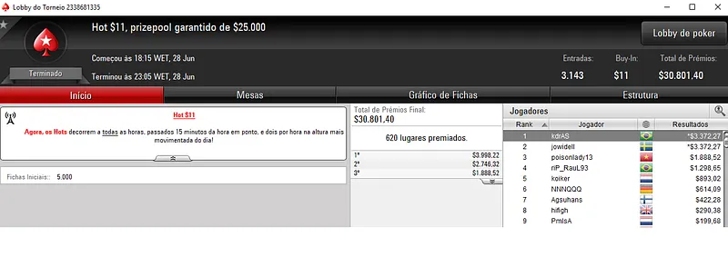 Outros Resultados no PokerStars: