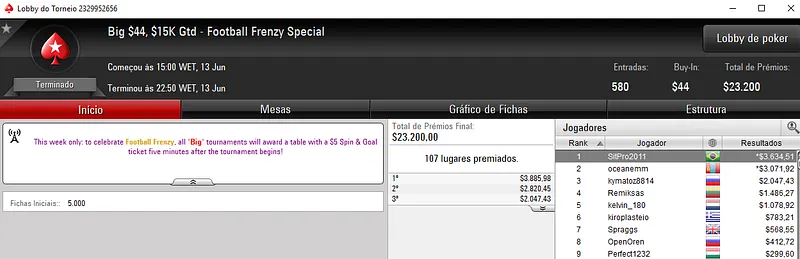 Outros Resultados no PokerStars: