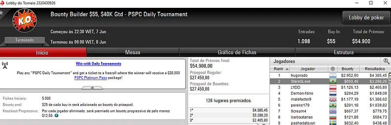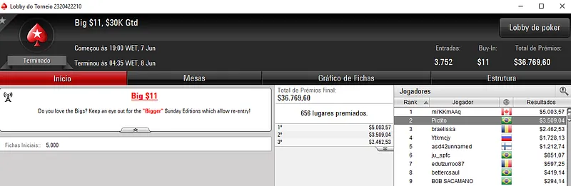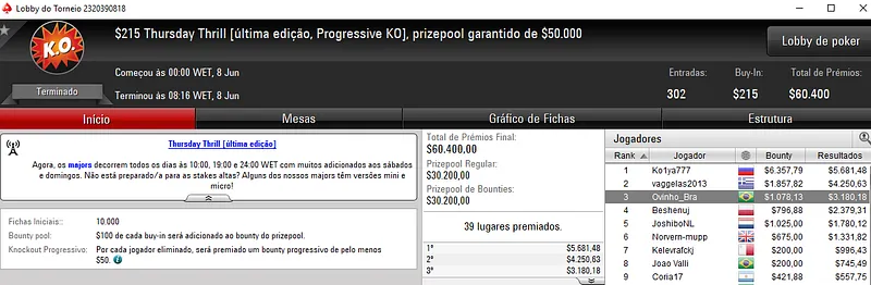 Outros Resultados no PokerStars: