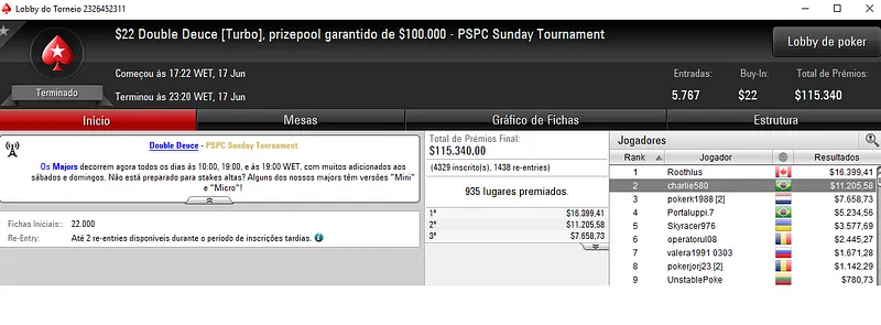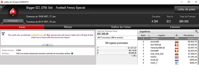 Outros Resultados no PokerStars:
