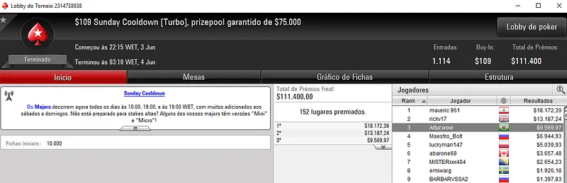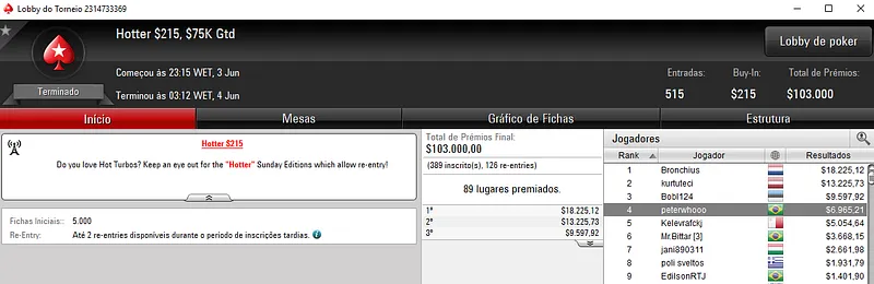 Outros Resultados no PokerStars: