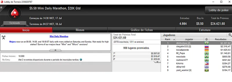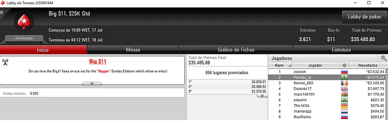 Outros Resultados no PokerStars: