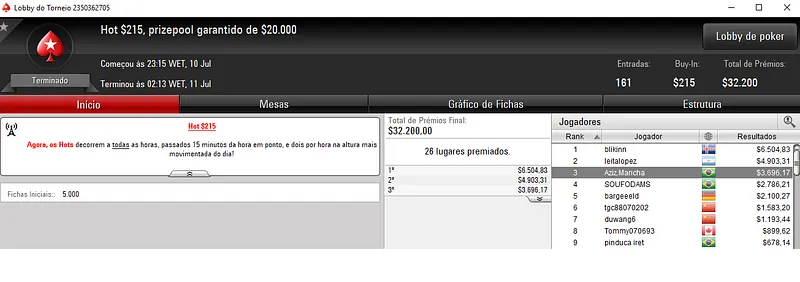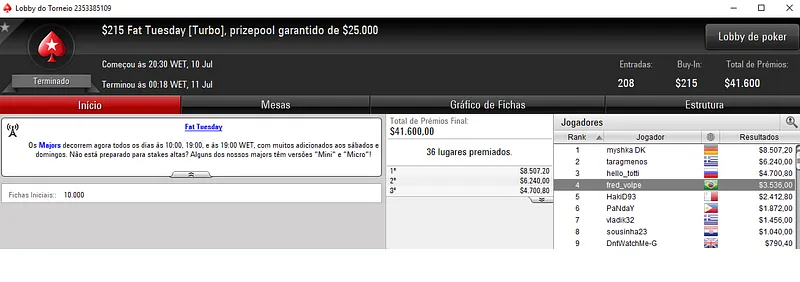 Quem também deu uma boa cravada foi rodrigokoppr que se sagrou campeão do Mini Super Tuesday com 895 entradas. O prize pool de $89,500 foi distribuído pelos 143 melhores classificados com o jogador verde e amarelo a receber $14,946 de premiação. Na quarta colocação, Luizftorres encaixou $5,555 de compensação.