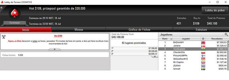 Ontem foi mais um dia de grandes resultados brasileiros nos panos virtuais do PokerStars.