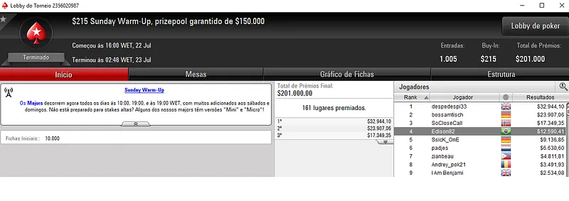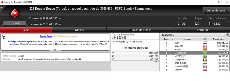 Zanetti89, jricardosc e soljr09 com Domingo Gordo no PokerStars & Mais