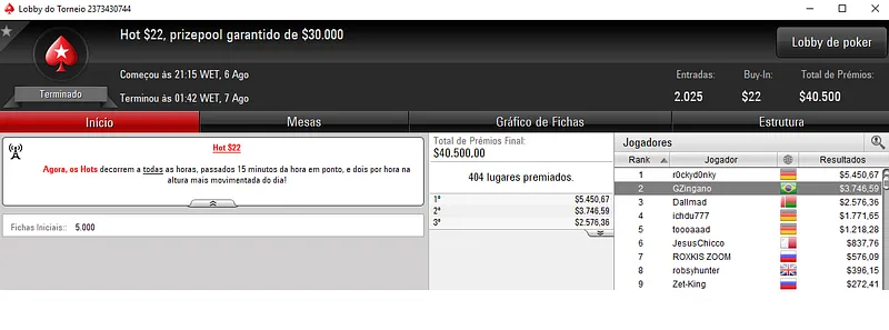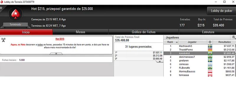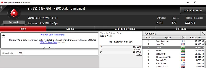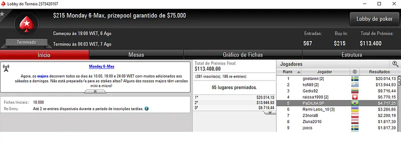 Outros Resultados no PokerStars: