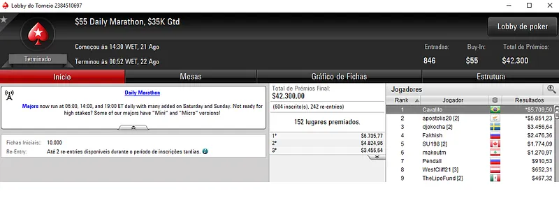 Outros Resultados no PokerStars: