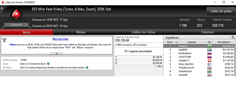 Outros Resultados no PokerStars: