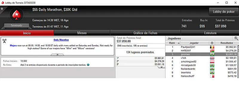 Outros Resultados no PokerStars: