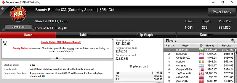 Ontem foi dia de grandes vitórias no torneios Bounty Builders no PokerStars.