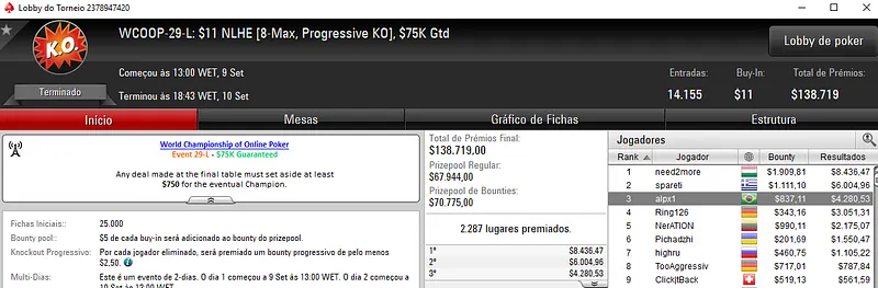Kovalski1 e edercampana Dividem Premiação do WCOOP 31-High & Mais