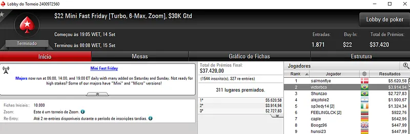 Confira aqui quem mais faturou na reta de ontem do PokerStars:
