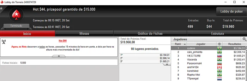 Confira aqui quem mais faturou na reta de ontem do PokerStars: