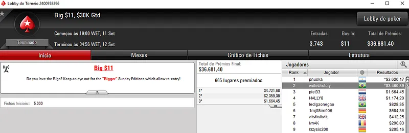 Confira aqui quem mais faturou na reta de ontem do PokerStars: