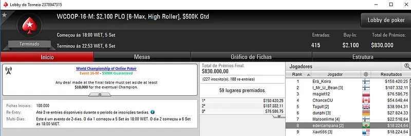 Mais Resultados Brasileiros no WCOOP do PokerStars: