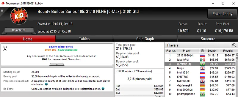 Outros Resultados na Bounty Builder series do PokerStars: