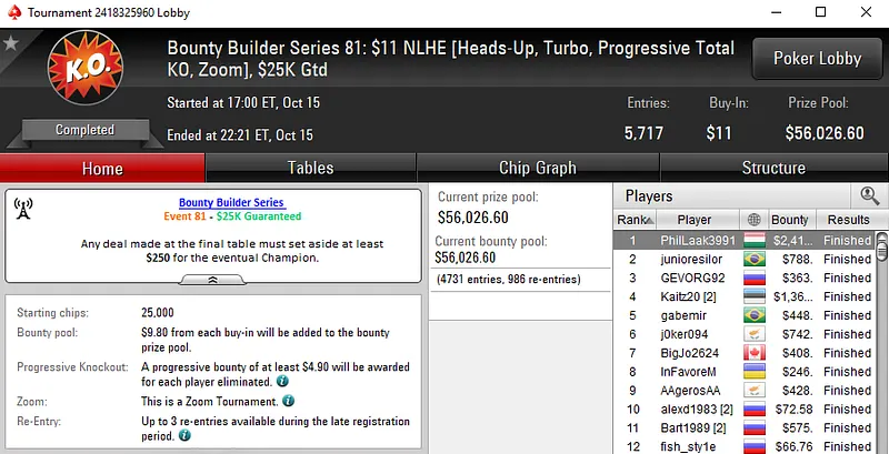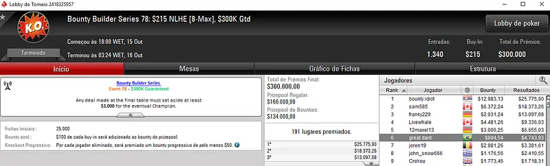 Outros Resultados Brasileiros nas Bounty Builder Series do PokerStars: