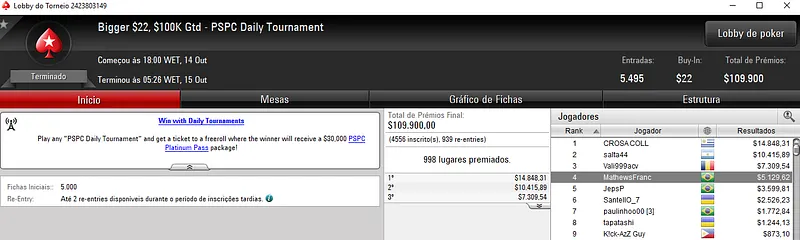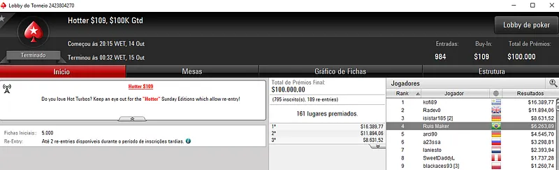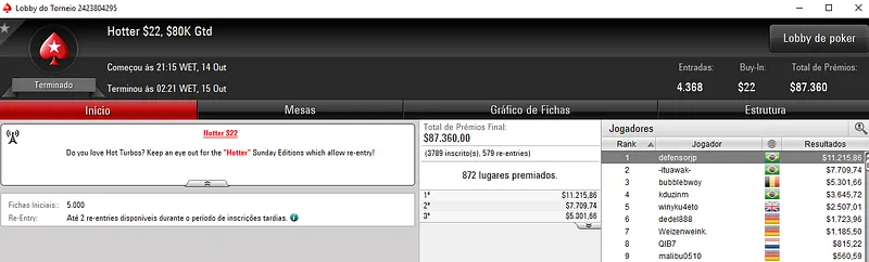 Confira aqui quem mais faturou na reta de ontem do PokerStars: