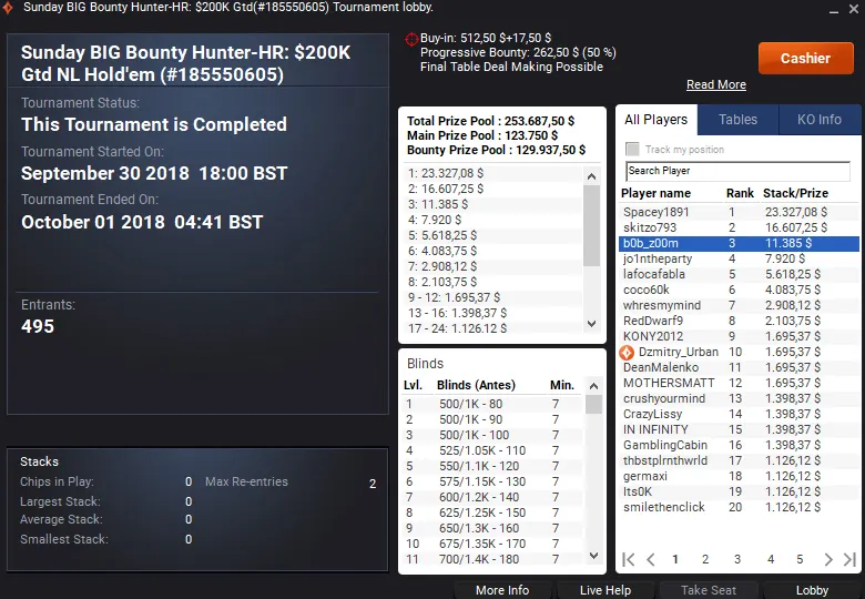 Quem também se deu bem foi maurogostoso que venceu o Sunday Bounty Hunter High Roller com 150 entradas. O jogador verde e amarelo saiu com $23,695 de premiação e viu na terceira colocação, Geraldo "BateBicoPLZ" Cesar Neto sair com $6,846.