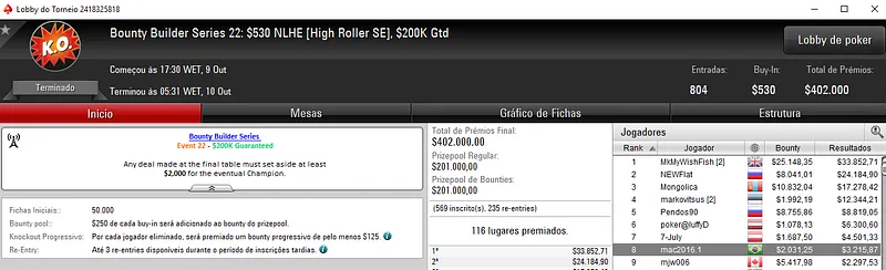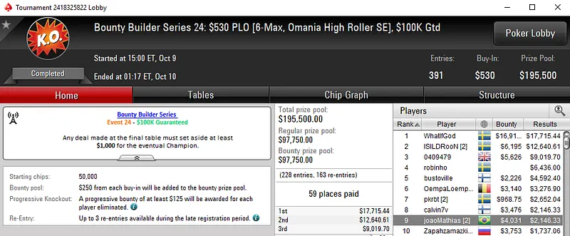 Outros Resultados Brasileiros nas Bounty Builder Series do PokerStars: