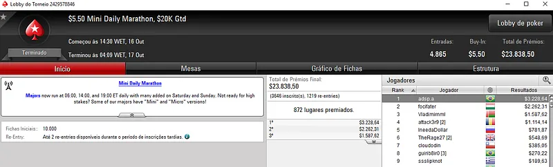Confira aqui quem mais faturou na reta de ontem do PokerStars: