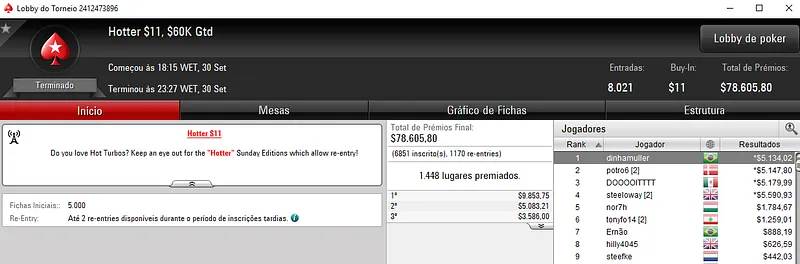 Confira aqui quem mais faturou na reta de ontem do PokerStars: