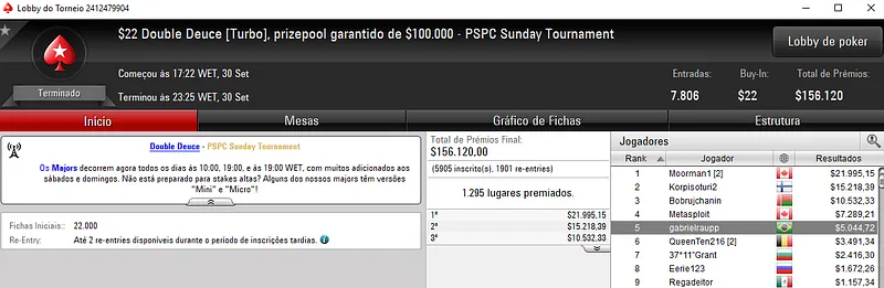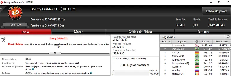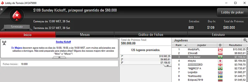 O grande resultado aconteceu no $11 Sunday Storm com 23,739 entradas, onde todo o pódio vestiu as cores nacionais. Na primeira colocação, MestreKÓ embolsou $21,429 de premiação. Seguido de Gioiatckmj que faturou $14,721 e de offenscsc com a medalha de bronze e $10,123. O prize pool de $232,642 foi repartido pelos 4,652 melhores classificados.