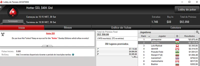 Além do grande resultado de Luiz Felipe Sales no Sunday Million. Os grinders brasileiros também deram show nos torneios regulares do PokerStars.