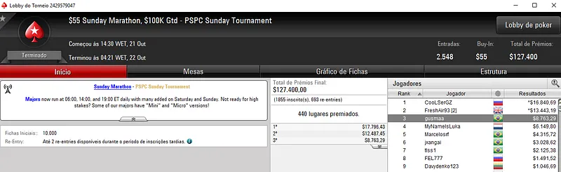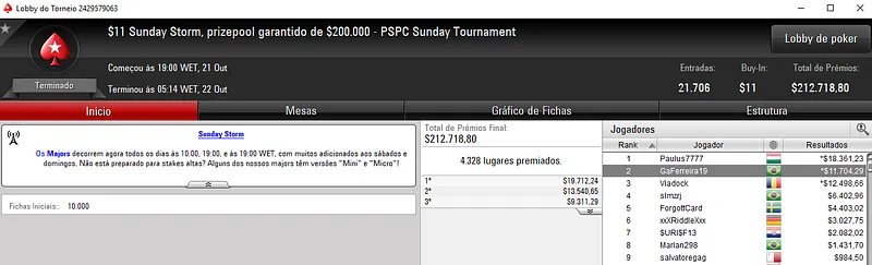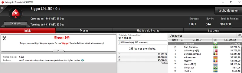 Confira aqui quem mais faturou na reta de ontem do PokerStars: