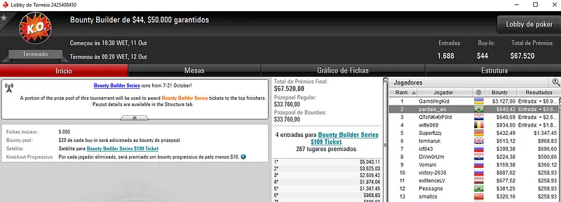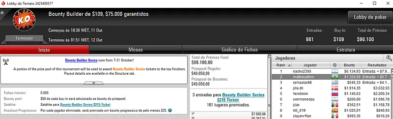 Pedro "PaDiLhA SP" Padilha também foi destaque na reta de ontem ao cravar o Bounty Builder $215 com 299 entradas . O craque encaixou $12,708 no torneio que distribuiu $59,800 de prize pool.