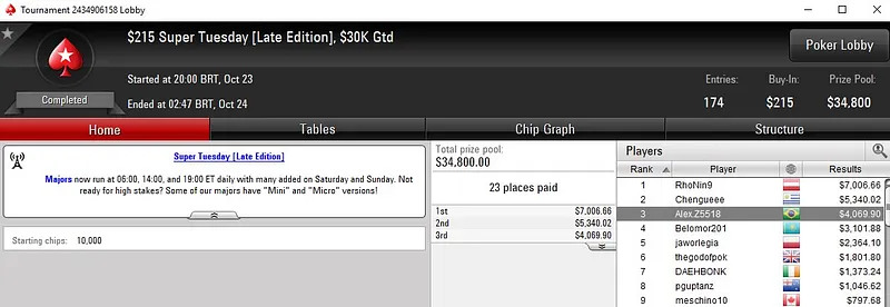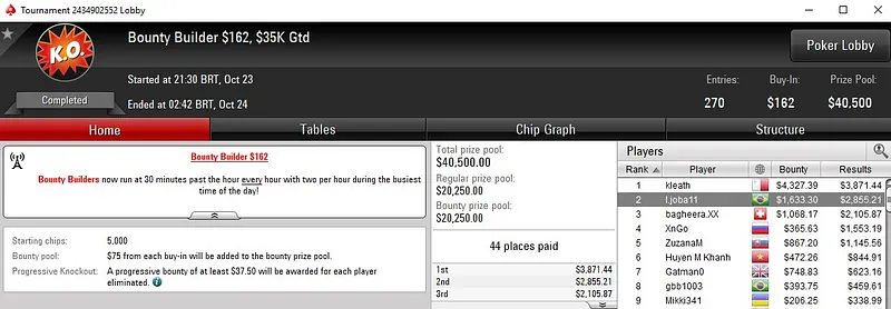Quem também levou um belo prêmio de quatro dígitos foi leo maltino. O brasuca deixou para trás toda a concorrência no $215 Triple Threat [3-Max, Turbo, PKO, Zoom], cravou o torneio e levou para casa US$ 8.223. Pseudo Fruto foi 3º colocado para US$ 1.661.