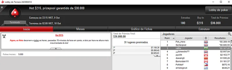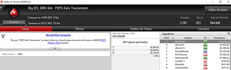 Confira aqui quem mais faturou na reta de ontem do PokerStars:
