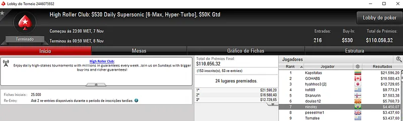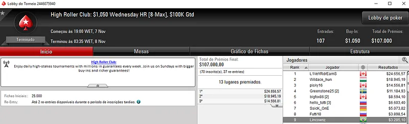 Confira aqui quem mais faturou na reta de ontem do PokerStars:
