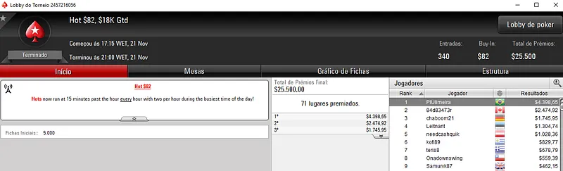 Confira aqui quem mais faturou na reta de ontem do PokerStars: