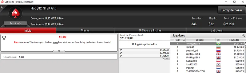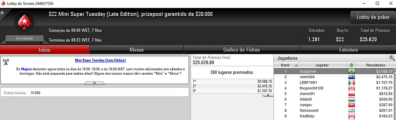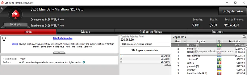 Confira aqui quem mais faturou na reta de ontem do PokerStars: