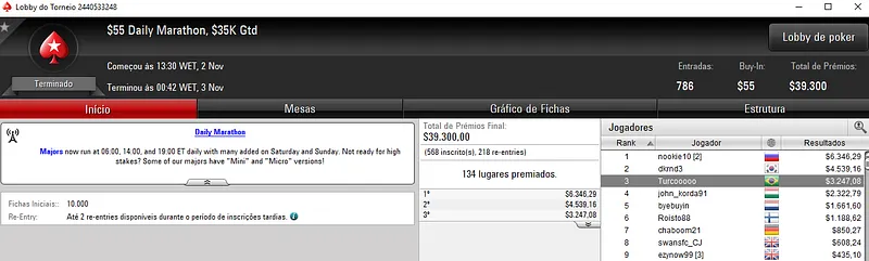 Confira aqui quem mais faturou na reta de ontem do PokerStars: