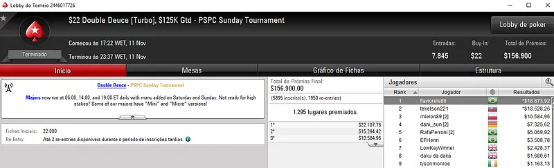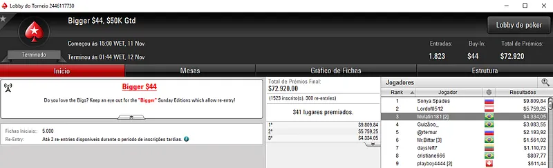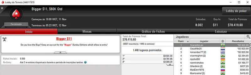 Confira aqui quem mais faturou na reta de ontem do PokerStars: