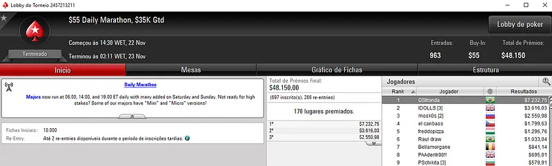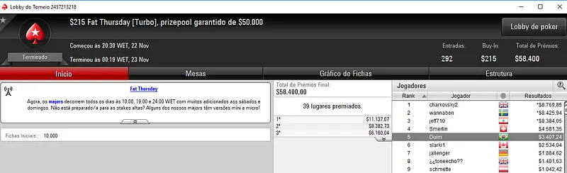 Confira aqui quem mais faturou na reta de ontem do PokerStars: