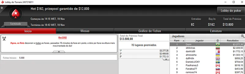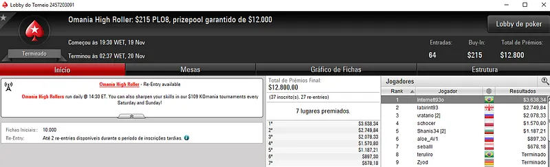 Confira aqui quem mais faturou na reta de ontem do PokerStars: