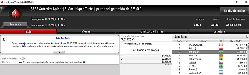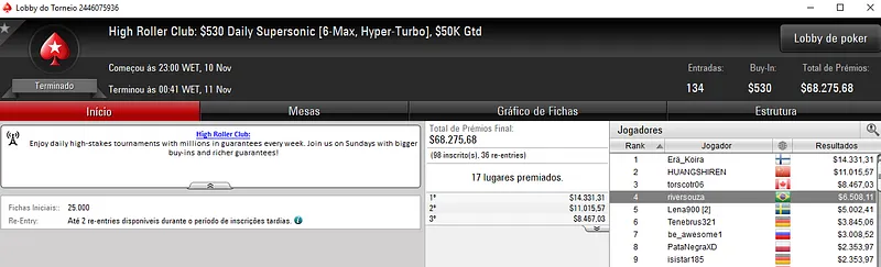 Confira aqui quem mais faturou na reta de ontem do PokerStars: