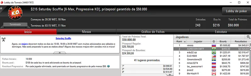 Ricardo "riversouza" Souza Crava $215 Saturday KO do PokerStars & Mais