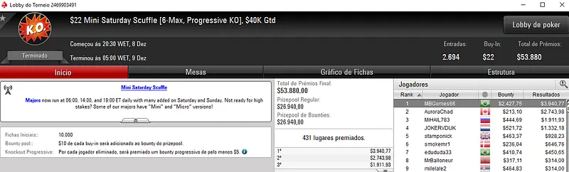 Na preparação para a grande reta de domingo os jogadores nacionais se deram bem nas mesas do PokerStars. Vários grinders embolsaram premiações importantes, começando logo pela vitória de edu22.sp no High Roller Club: $530 Bounty Builder HR com 268 entradas. O jogadora brasuca voltou a dar show e levou para o caixa $23,058 de premiação. Na terceira colocação, PE/RECIFE1 ainda teve direito a $11,746, entre prêmio e bounties. Este evento distribuiu $134,000 prize pool.