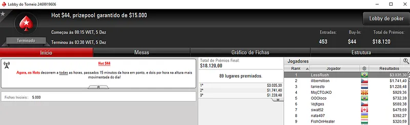 Com a vitória no High Roller Club: $530 Daily Supersonic, edu22.sp foi mesmo o maior vencedor do dia e encaixou $24,022. Para trás ficou o field com 244 entradas e $124,322 de prize pool.