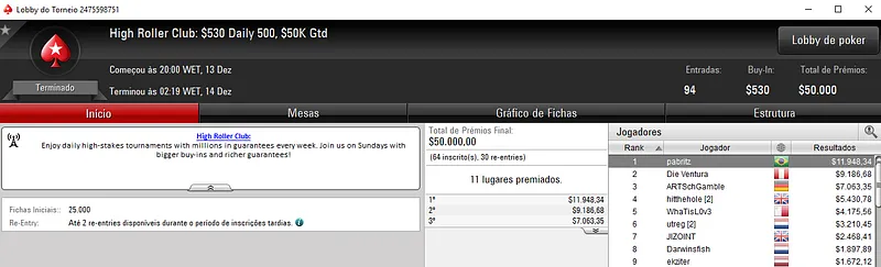 Confira aqui quem mais faturou na reta de ontem do PokerStars: