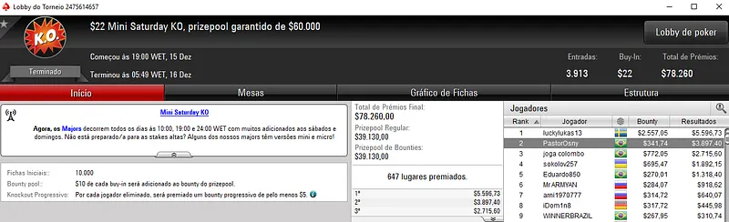 Confira aqui quem mais faturou na reta de ontem do PokerStars: