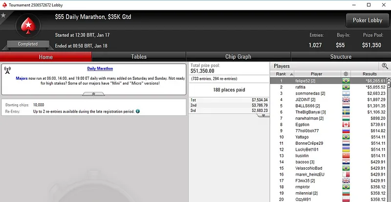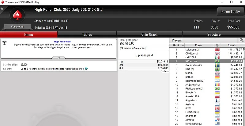 Confira aqui quem mais faturou na reta de ontem do PokerStars: