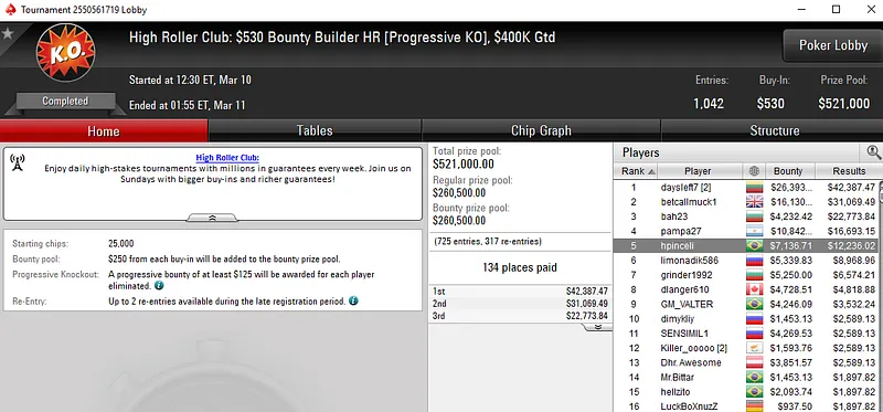 Além do resultado acima, houve outros brasileiros que se deram bem nos torneios do High Roller Club do PokerStars. Confira na galeria abaixo: