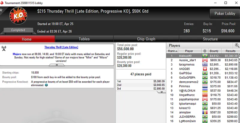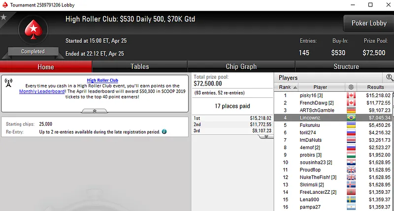 Confira os detalhes destes e outros resultados no PokerStars: