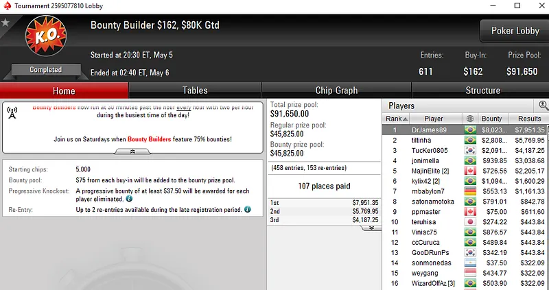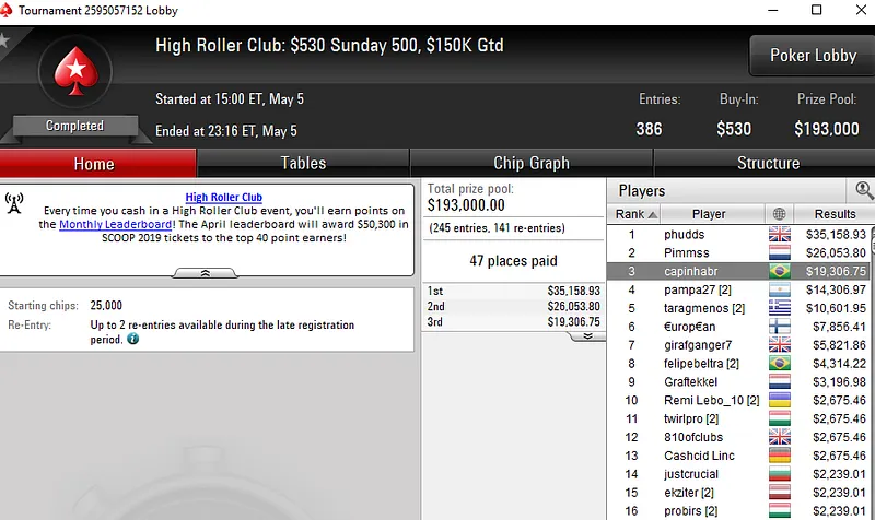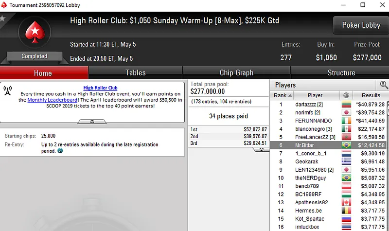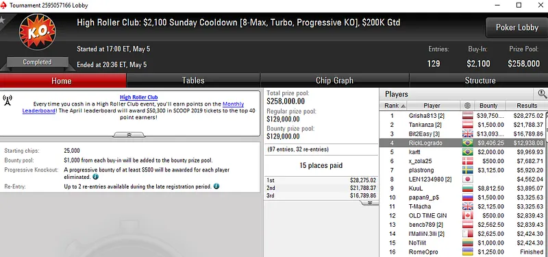 Outros resultados da reta de domingo no PokerStars: