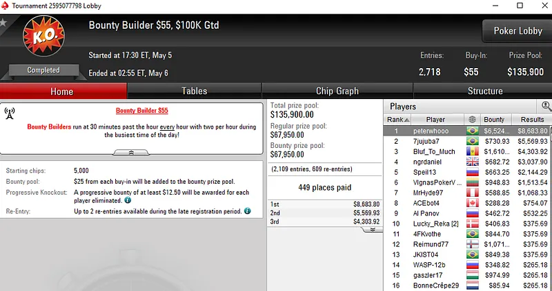 Na mesa final, Thomas teve a companhia do seu compatriota "ChristianBR4", jogador que levou para casa US$ 12.375 ao terminar na oitava colocação.